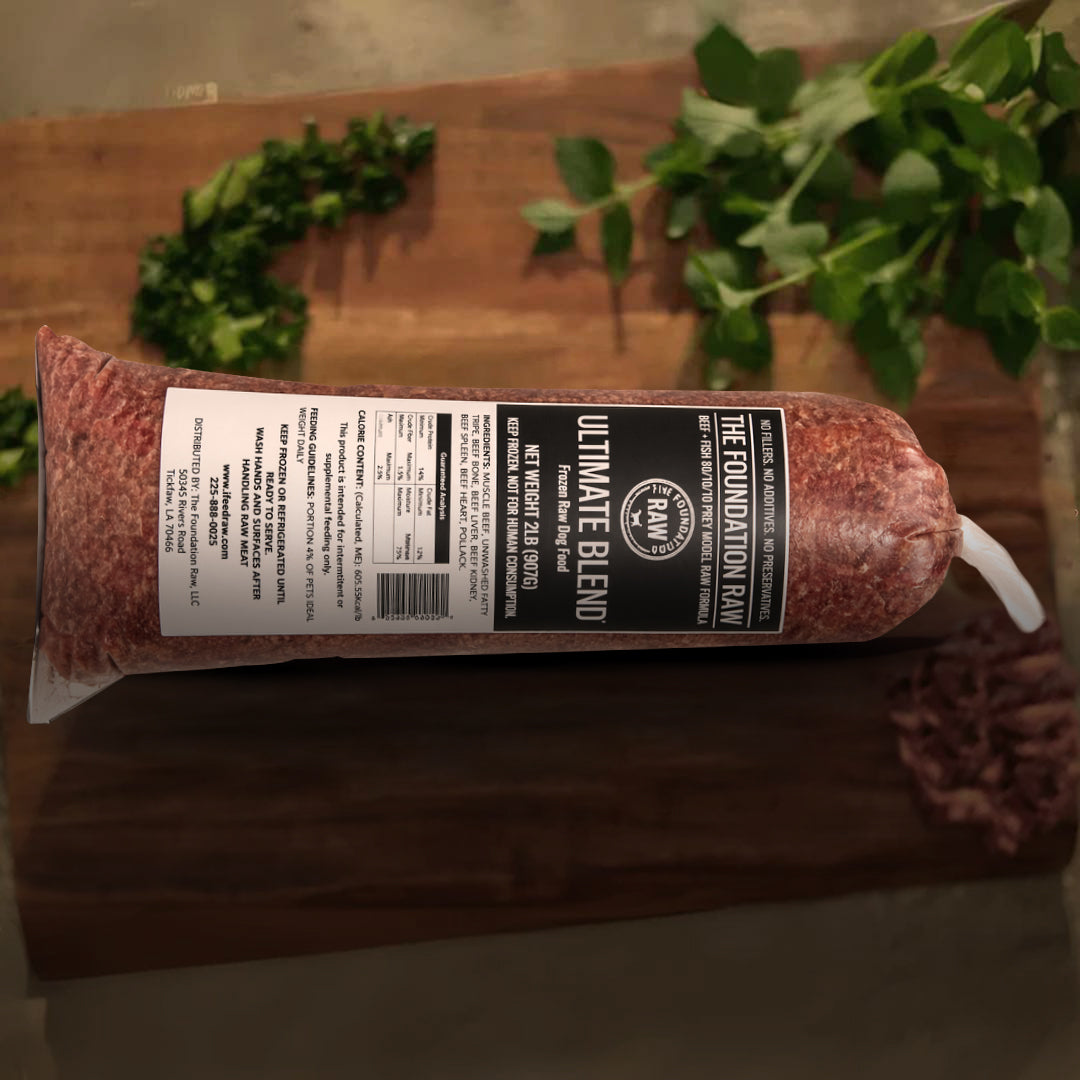 | Foundation Blend | Ultimate Blend, but no fish or bone. | Easier-to-digest blend with tripe for gut support. | Dogs transitioning to raw or needing a bone-free recipe. | Order Now |
